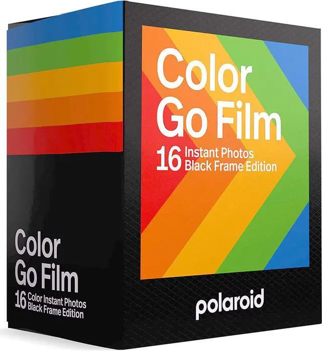 BLACK FRAME: Each double pack includes 16 color instant photos framed in super black and ready to take on the world. For use exclusively with the Polaroid Go camera.
