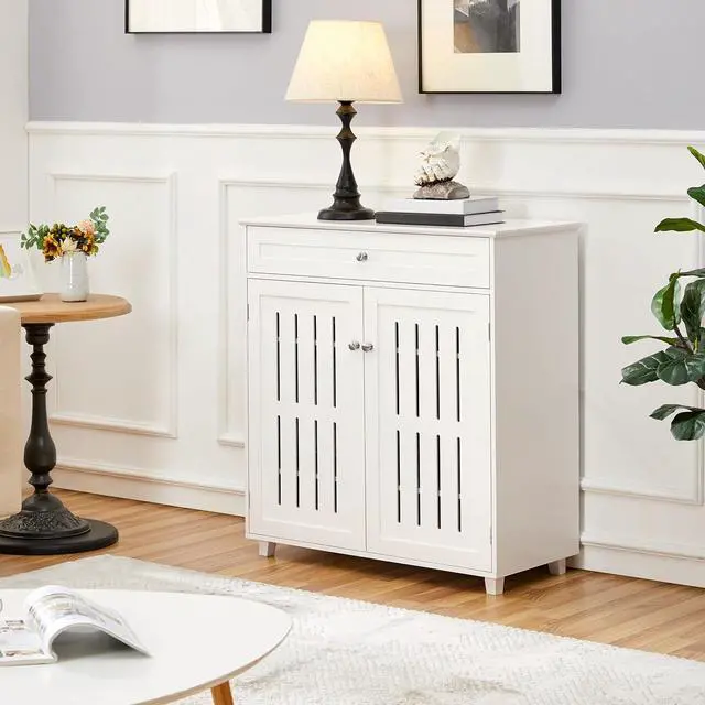 Louvered Door Design: To extend shoes' service life, wed better store our shoes in a dry place with good air circulation. Out of this consideration, this shoe cabinet applies louvered doors with inset magnetic door stops for better ventilation and privacy