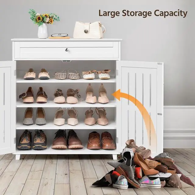 Ample Storage Space: This shoe cabinet has a 4-layer shelf and a spacious drawer for keeping small items like keys, belts, shoe inserts, and shopping cards. Each shelf can hold 3-4 pairs of shoes, which is ideal for a family or shoe collection