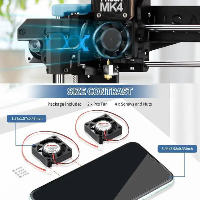 Fan: 40mm 12V DC fan with dual ball bearings for long-lasting, reliable performance. Upgraded for superior cooling of small appliances, RV fridges, and 3D printers