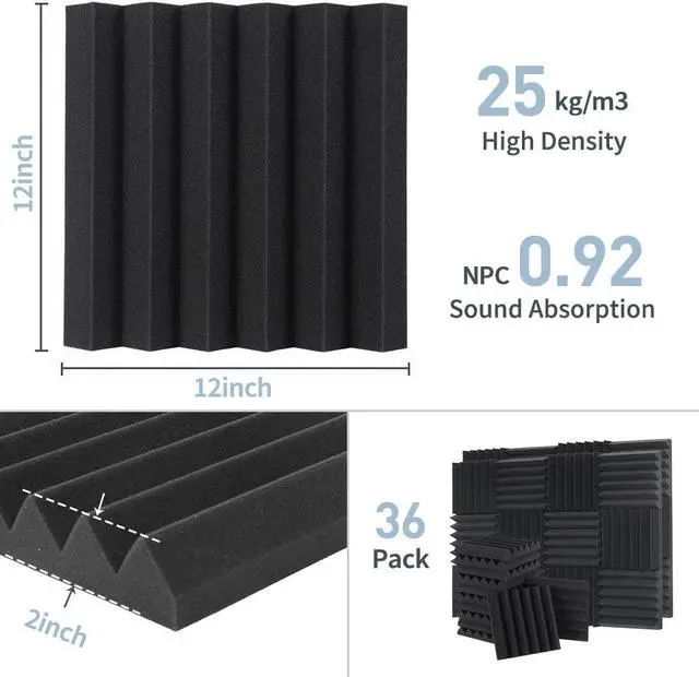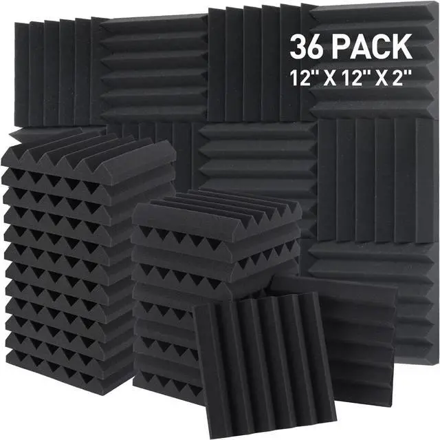 Easy to Install36 Pcs Covers 36 Square Feet. Each tile is 1 square foot of 2 inch thick acoustic panels. Using stickers or a special adhesive spray for acoustic foam, the panels are very easy to install on any surface.