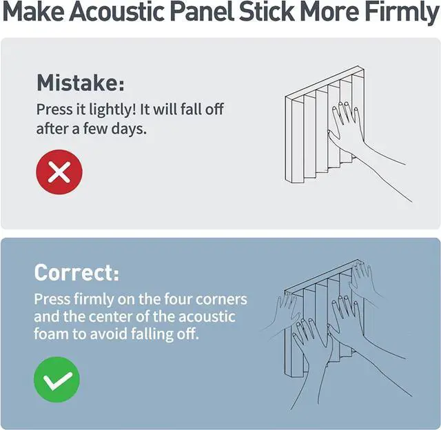 Unique Design of Wedge SurfaceThis Acoustic Foam Panels is designed as unique triangle, which can not only absorb unnecessary sound, but also play a role in decorating the wall surface. Performs good in absorbing and eliminating unwanted echoes, flutter echoes, standing waves, reverb. You can harness to create the optimal environment for music recording or peaceful work.