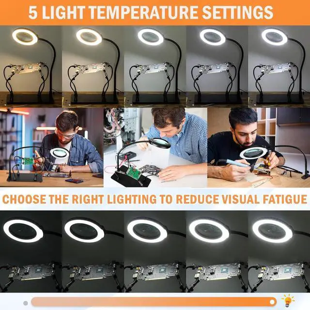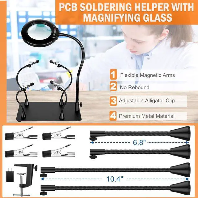 Multipurpose Tool: Our Solder Helping Hand with the magnifying lamp is for close work and is a versatile tool suitable for a wide range of applications. It excels in precision soldering, welding, PCB holding, electronic repairs, model building, watchmaking, and other tasks that require fine detail work. Whether you' re a hobbyist, a professional craftsman, or a dedicated DIY enthusiast, this makes for a warm gift idea.