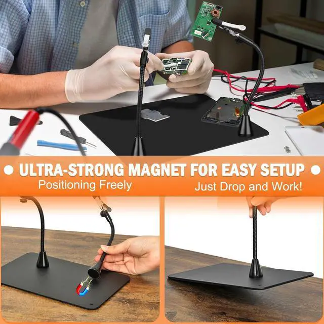 This helping hands soldering tool is a breeze to set up. Just place the magnetic arms on the base, adjust the angles to your liking, and you' re ready to start working! If you have any concerns, our customer support team is here to assist you.