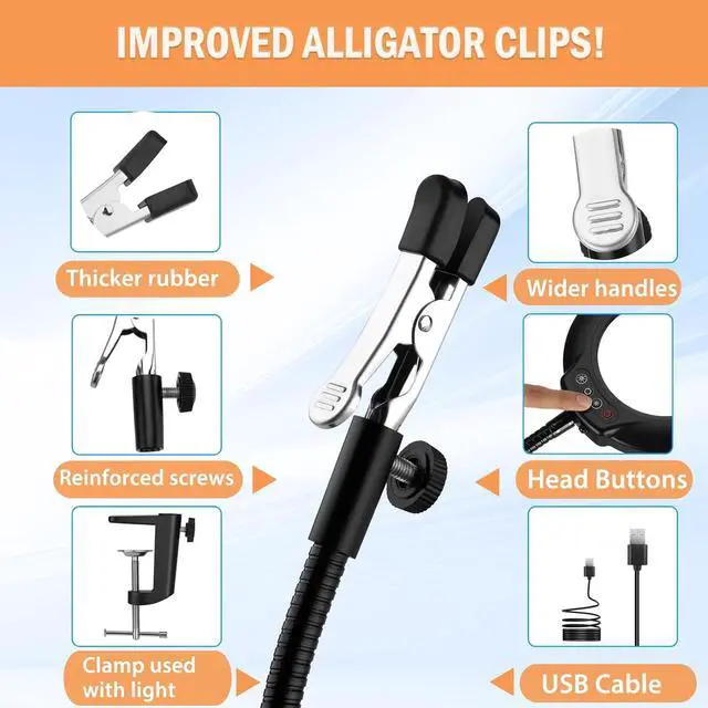 Upgraded Alligator Clips: Our Soldering Helping Hand comes equipped with thickening alligator clips, ensuring precise positioning of your PCB board. The flexible gooseneck arms stay securely in place, allowing you to achieve the perfect angle for your soldering. The rubber covers on the clips provide added protection for your circuit board.