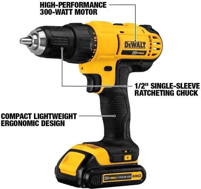 NEW 18V XR Li-Ion compact drill driver featuring XR 1.3A h Li-Ion battery technology