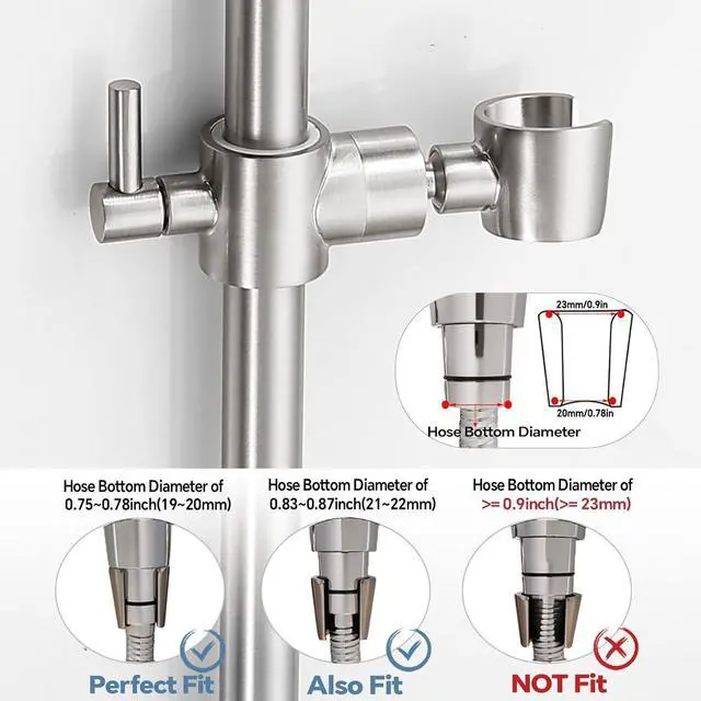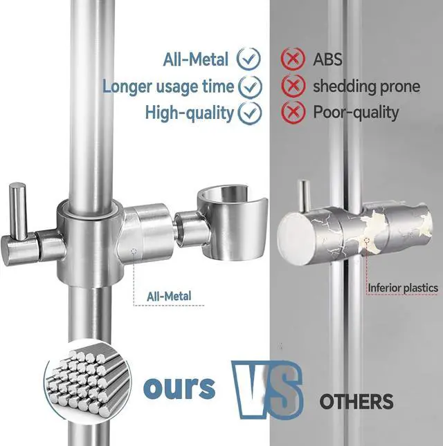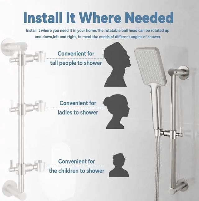 & Angle Adjustment]: shower slide holder can freely move and get locked. Shower capable of 360° rotation can meet the needs of each family member with different heights and shower angles.
