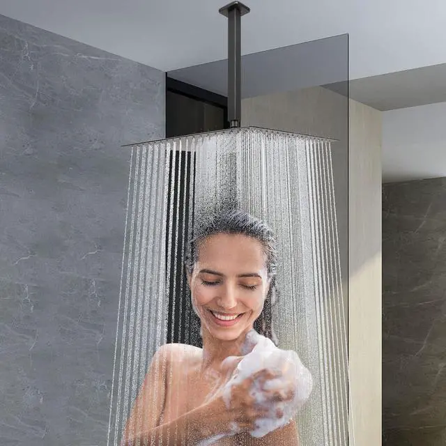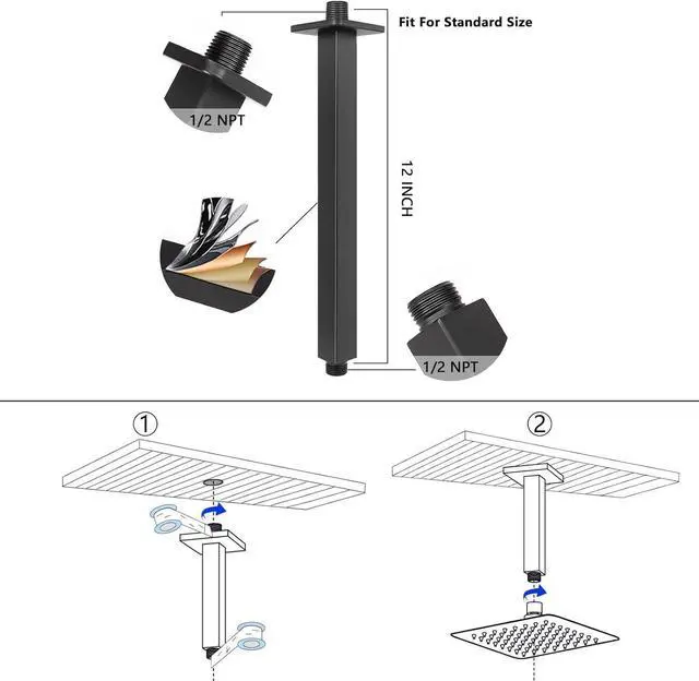 PERFECT COLLOCATION SHOWER ARM: Ceiling Mount Shower Arm is made of stainless steel, strong, anti-rust, design for rain showerhead. It works with a 16-inch extra-large overhead shower, providing a large wall distance for a relaxing shower.