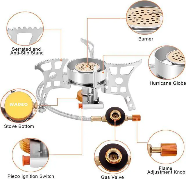 High Energy Efficiency: Our camping stove can reach 3900W power so that you can boil water or cook your food in a short time. The windproof design helps improve burning efficiency and makes the flame more concentrated, which will save your gas fuel. You don' t have to buy an extra windshield caused this upgraded camping stove will work even in high winds.