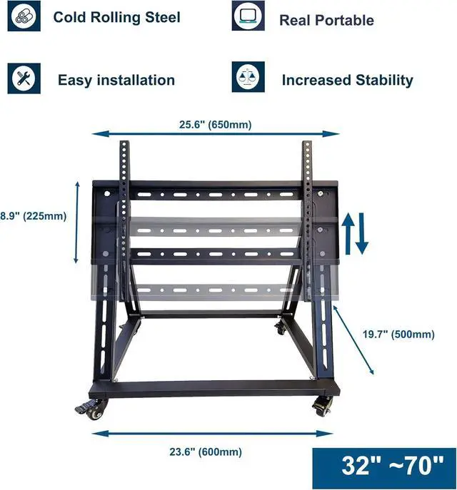 HIGHLY COMPATIBLE: Our universal TV display mount meets your different needs to move your monitor from the living room to the bedroom as well as the presentation for commercial use in shopping mall, hospital, stage, school, video conference room, trade show, church, hotels and yoga/workout area, etc.