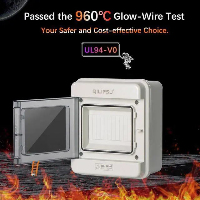 SUPERIOR FIRE SAFETY- The material for QILIPSU Next-Gen circuit breaker box has been upgraded to the finest V0 PC/ABS alloy plastic, which has demonstrated flame resistance through a rigorous 960 hot wire test. This premium material provides enhanced durability, superior resistance to high temperatures and pressures, and longevity that' s second to none. It' s the perfect solution for high-end projects that demand the highest-quality equipment.