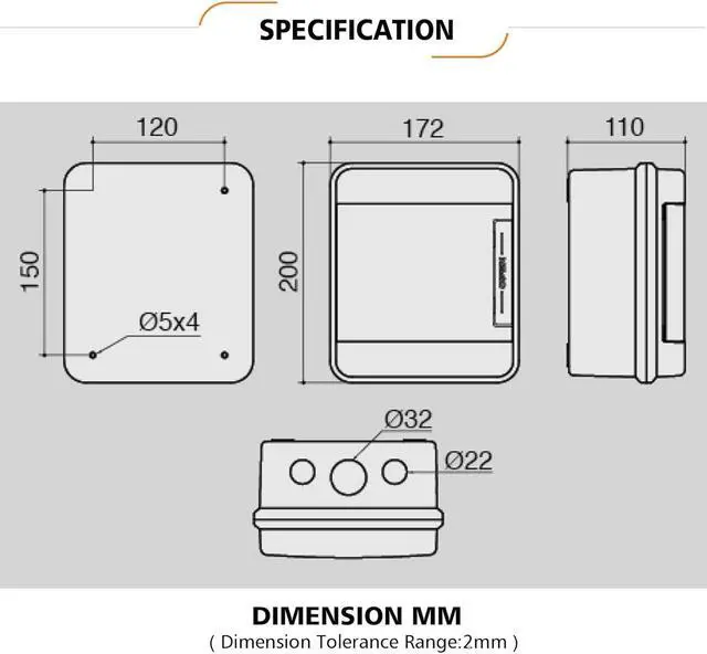 EXTERNAL DIMENSIONS- 6.8 " x 7.9 " x 4.3 " (172x200x110mm).