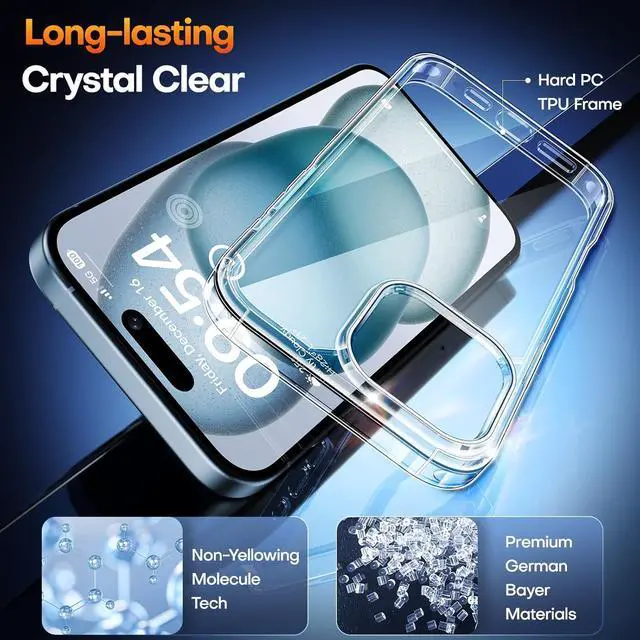Crystal Clear: The iPhone 15 plus clear case Crafted from elite-grade Germany Bayer TPU, An embedded Nano antioxidant layer resists blemishes and perspiration, immune to yellowing, preserving the original aesthetics