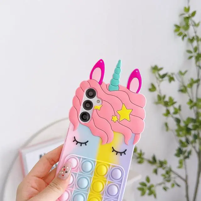 CompatiblyThe 3D Stress Relief Push Pop Bubble Unicorn Kids Girls Women Soft Silicone Case Compatible with Samsung Galaxy A14 5G/4G 6.6 inch.