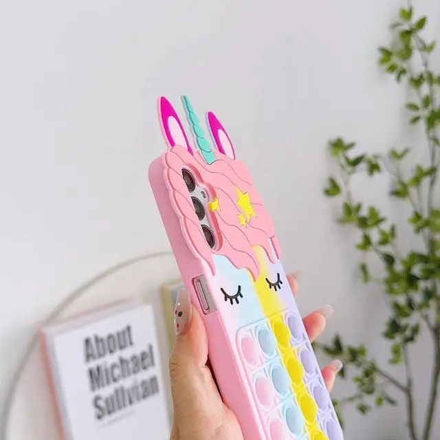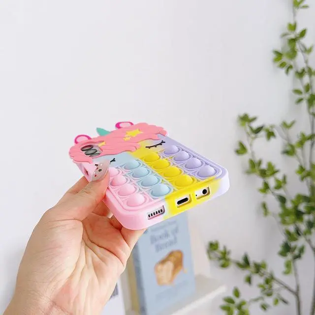 CharacteristicThe 3D Stress Relief Push Pop Bubble Unicorn Case Combines The Most Popular Stress Relief Toys at the moment, It can relieve stress and exercise the brain, but it is also a beautiful mobile phone decoration, Make your mobile phone enough to catch other people' s eyes, Get a lot of Compliment.