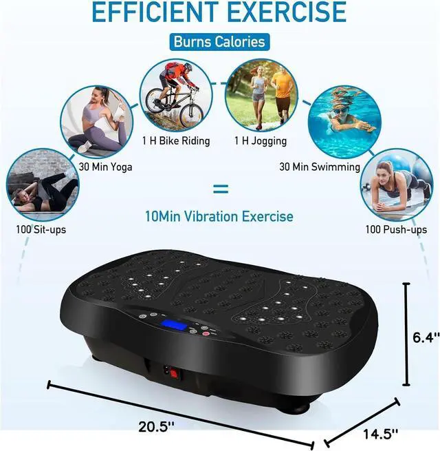 SAFETY & HUMANIZATION DESIGNVibrating plate with high quality ABS material and double thickened surface to make the plate more durable and sturdy. 4 anti-slip suckers on the bottom offers the stability of the vibrating platform while using. Compact size can be used anywhere and save space: 20.5 x 11.8 inches.