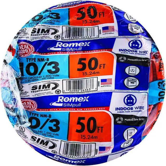 10 gauge; 3 conductors with ground; 50' per coil