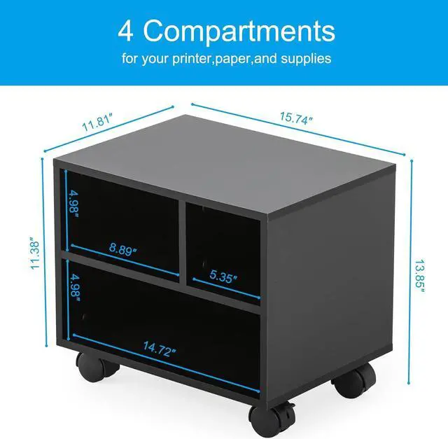 Multi-Purpose Printer Stand: Fax machine, printer or scanner are supported to be placed on the top of the stand, multiple compartments can store paper and other supplies. When you remove the wheels, it will transform itself into a desktop organizer and can be stacked.