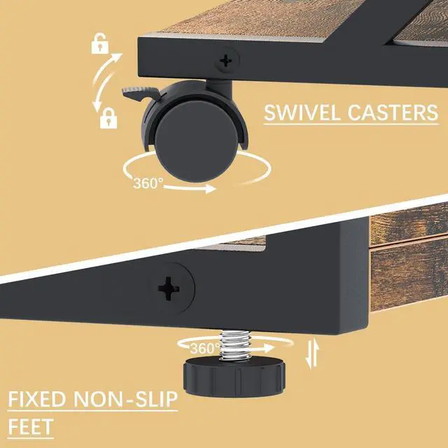 Two OptionsWe offer two options: wheels and adjustable foot pads. Install adjustable foot pads, printer stand will be absolutely stable; By installing wheels, the printer stand can be moved freely. You are free to choose.