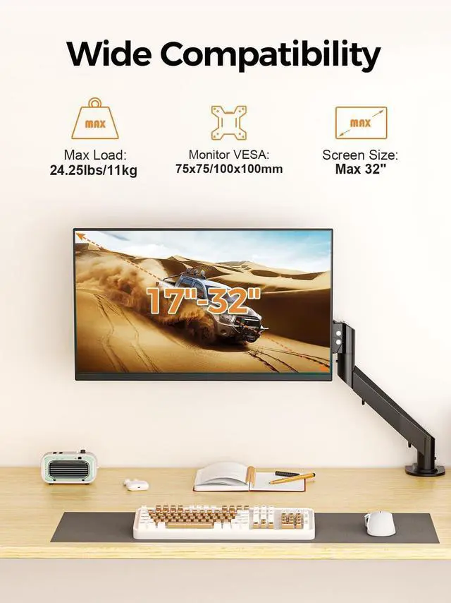 Universal - Bracwiser monitor desk mount fits most 17-32 flat or curved computer screens. It holds monitors 2.2 - 24.25 lbs with VESA 75x75mm and 100x100mm. The size of whole VESA plate is 113*113mm.