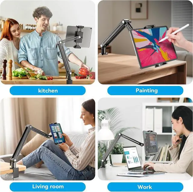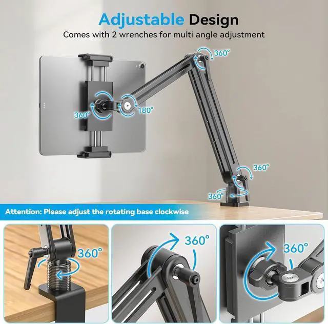 Flexible Adjustment: Featuring two side wrenches, this ipad arm mount allows multi-angle and height adjustments, the tablet mount can enhancing daily work efficiency and usage comfort.
