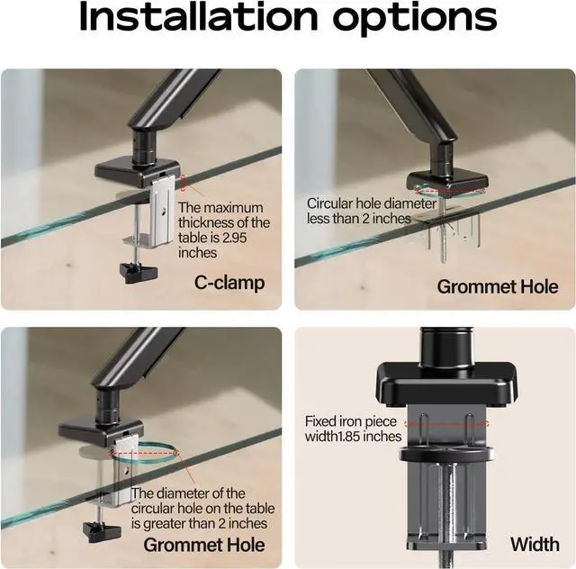 Stay Healthy and Focused: Say goodbye to neck and shoulder pain with our premium ultrawide monitor mount, allowing you to elevate your monitor to eye level. This improves your posture, helping you stay productive and focused throughout the day. There are detailed answers to questions about product usage in the video