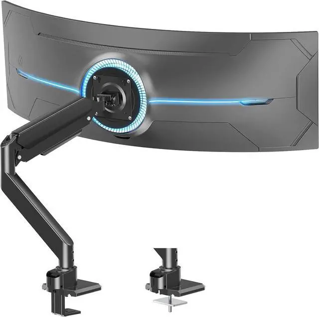 Free Up Desk Space - This single premium curved monitor mount features with a sturdy arm which ifts screen upward to free up a room for keyboards, notebooks, or that coffee mug, effectly turns clutter space into a clean and modern workspace. Built-in cable management hide the messy wires in the arm, keeping in a neat and organized look.