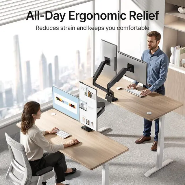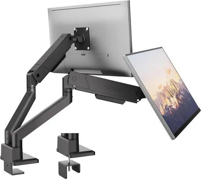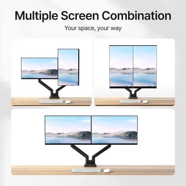 Uses: This dual monitor mount works with most flat or curved screens sized 17" to 35". It has a max weight capacity of 35.27 lbs for steady performance, meeting VESA 75x75mm and 100x100mm standards. Perfect for office workstations, home setups, gaming rigs, this monitor arms for 2 monitors fits diverse uses reliably.
