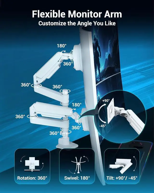 Industrial-Grade Durability Equipped with premium gas springs to eliminate rebound, our 2 monitor desk mount delivers ultra-smooth, effortless screen adjustmentsfar surpassing standard stands. Rigorously tested over 20, 000+ cycles, it guarantees rock-solid stability at every extension angle.