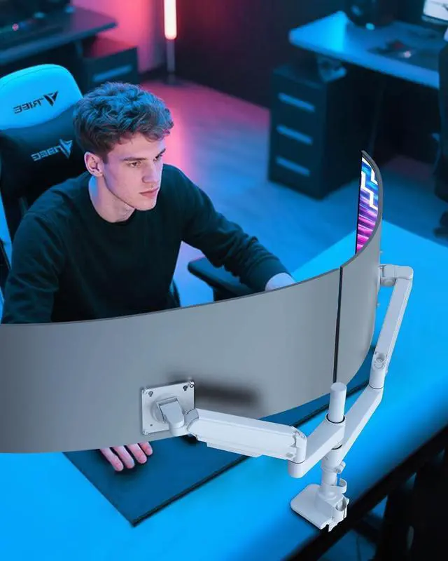 Holds Monitor WellIt' s a heavy-duty adjustable gas spring monitor arm designed to securely hold 13-49 inches ultrawide curved or flat monitors, with a robust capacity of up to 44lbs, ensuring stability and durability for your high-end monitors like Samsung G9, LG and more.