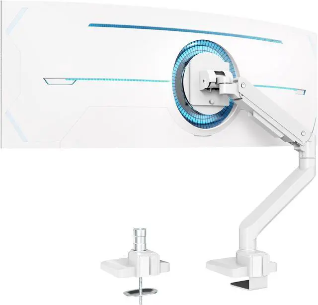 Premium Heavy Duty Monitor Arm for 17 to 49 inch Screens up to 44lbs, Fully Adjustable Ultrawide Single Clamp-on Desk Mount Stand, VESA 75x75/100x100mm (White)