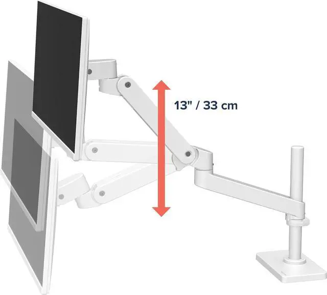 Elevate comfort: Easily raise your monitor up to 25 inches above your worksurface with 13 inches of lift; find your best view for each project with 360 degrees of rotation and 85 degrees of tilt