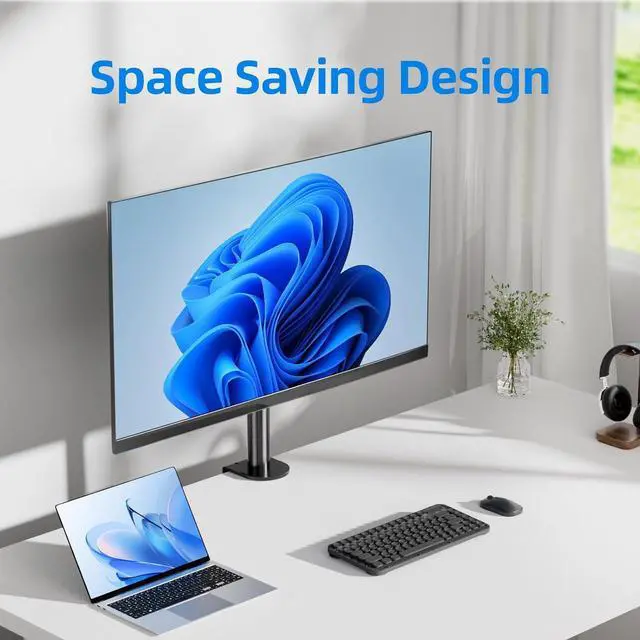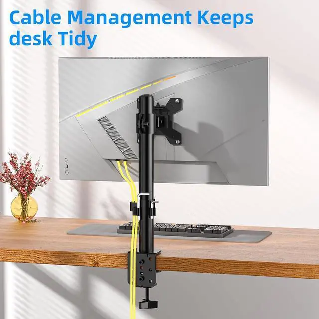 Saving Desktop SpaceMaximize your workspace efficiency. The monitor arm installs securely with a sturdy C-clamp (grommet mount option usually available), taking minimal desk space. Integrated cable management clips keep wires neatly organized and your desktop clutter-free.