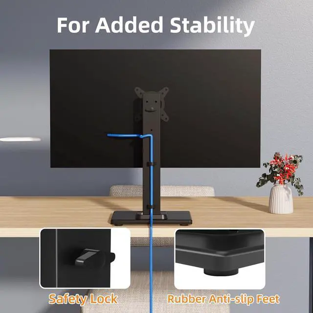 Maximum Monitor Stability: The stand is crafted with a strong steel column and a wooden base, providing superior stability for your display. Anti-slip pads attached to the bottom of the stand help to maximize grip on surfaces without scratching them, ensuring that your monitor stays securely in place.