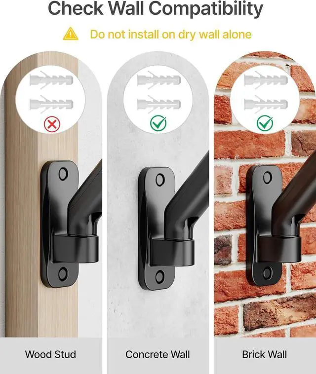 concrete walls (Note: Please do not mount to drywall alone). The quick-release VESA plate makes installation effortless, allowing you to set up this monitor wall mount within 10 minutes. Ideal for use in office, home, studio, gaming setup, which is a multifunctional tool to enhance your efficiency and productivity