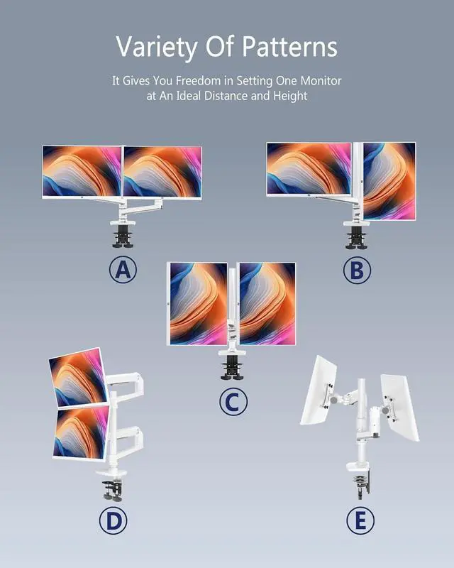 Quick Assembly & Ergonomic Design The E66 white monitor mount is not only easy to install. And as an ergonomic desk monitor mount, its also designed to comfort us by alleviating posture-related problems.