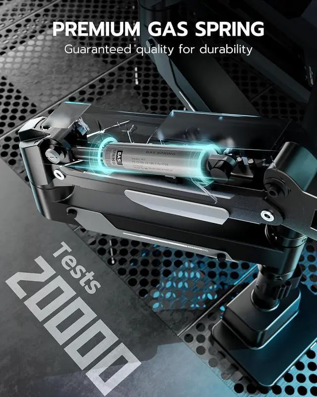 Durable and SturdyThis dual monitor stand offers superior build quality, featuring premium-grade steel and aluminum. Designed with a robust construction, this monitor mount does not wobble or sway. The built-in gas spring has undergone over 20, 000 fatigue tests to ensure its durability and resilience for large and expensive monitors