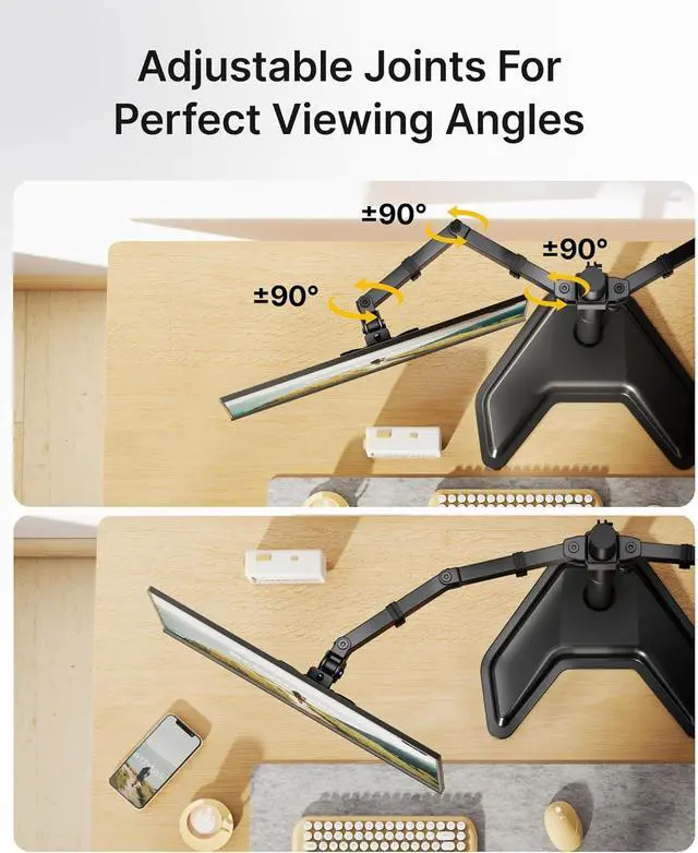 Smooth Arm Movement: Fully adjustable arms extend, retract, and rotate to position your monitors exactly where you need them, whether side by side or stacked for a more ergonomic setup.