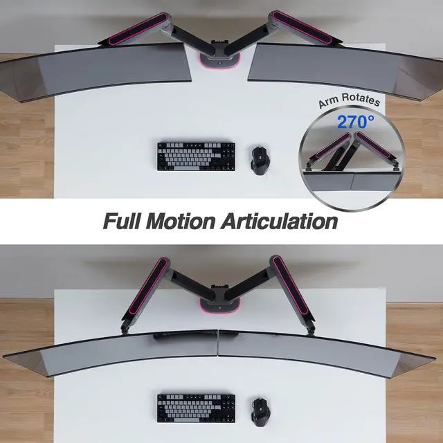 Ergonomic Viewing: Mechanical spring height adjustment; Adjusts from 7.7 to 18.1 in (195 to 460 mm); tilt, swivel, rotate, and extend the monitor for optimal posture; passed 10, 000-cycle motion test.