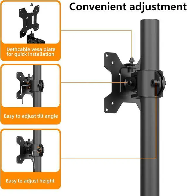 Easy to adjust: The VESA bracket is installed on an elastic column with a length of 40 centimeters, so the screen height can be adjusted from 0 to 40 centimeters. Tilt ± 10, rotate ± 45, rotate 360, and adjust the height of 400 millimeters along the center column to obtain the best viewing angle.