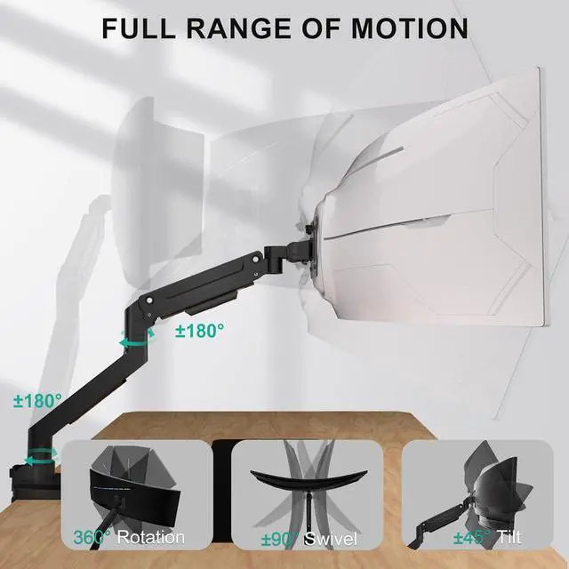 Flexible Adjustment & Ergonomic Design: +45°/-45° tilt and +90°/-90° swivel to change reading angles, and 180° rotate from landscape to portrait mode. this curved monitor mount is perfect for students, remote workers and professionals seeking an ergonomic single-screen setup that relieves neck strain and eye fatigue.