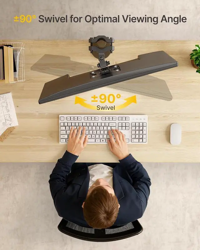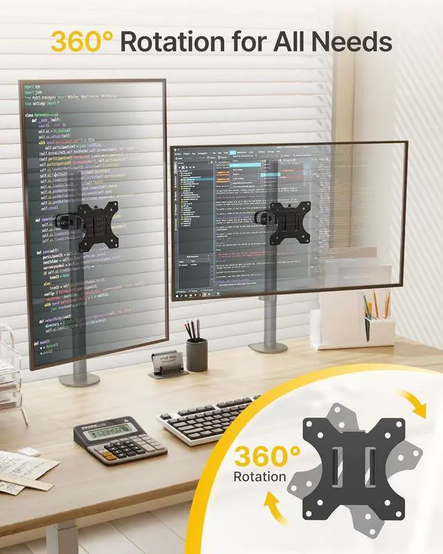 Flexible AdjustmentMonitor mount plate can be adjusted to your desired height at will on the center pole, no matter you are gaming, working or presenting, pole monitor mount can quickly allow you to find the ideal ergonomic position, reduce neck fatigue and improve your gaming or working experience.