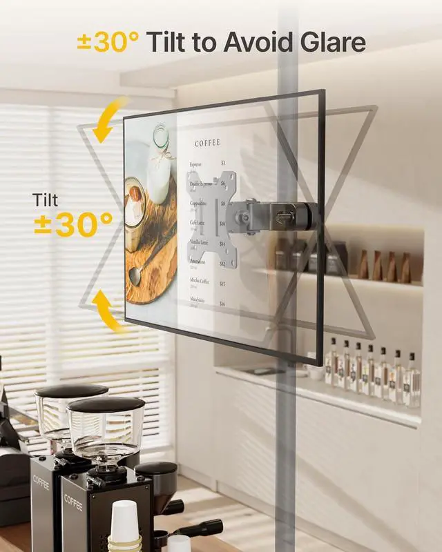 Perfect Visual ExperiencePole tv mount can tilt the screen +30°/-30° to reduce glare without tools. Pole mount tv bracket can be rotated +90°/-90° left or right, and the screen can be rotated +180°/-180° to realize multi-directional viewing and enjoy a comfortable viewing angle.