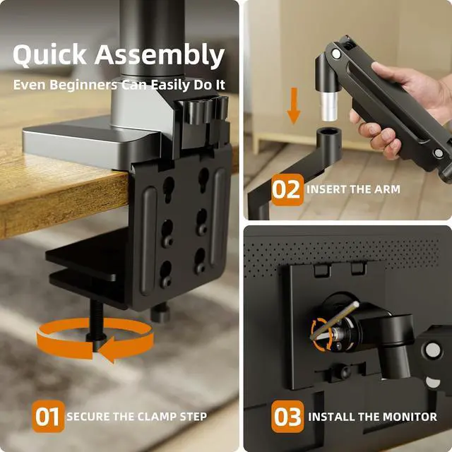 Package & Support: Includes 1 x Claiks Single Monitor Gas Spring Mount, a mounting hardware kit, and a user manual. We also provide experienced and friendly customer support to assist you 7 days a week with any questions or issues.