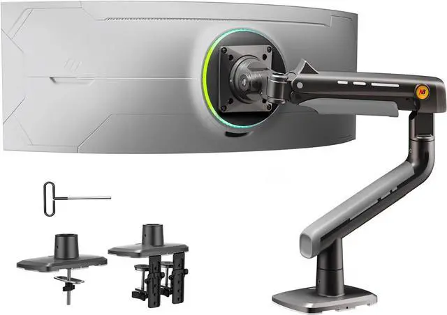 1. Wide Compatibility & Robust Support**Compatible with a vast range of monitors! This heavy-duty arm securely holds most 27 to 50 inch flat, ultrawide, or curved screens weighing 4 to 40 lbs (2-18 kg), thanks to its premium mechanical spring. Features universal VESA 75x75mm & 100x100mm mounting.