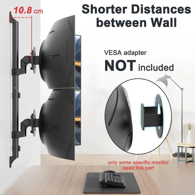 Optimize Your Workspace: With 4.3 inches of wall clearance, keeps your monitor at a healthy viewing distance; built-in cable management keeps wires tidy and out of sight, while wall mounting free up much valuable space on your desk, reduces neck strain by letting you position screens at eye level.