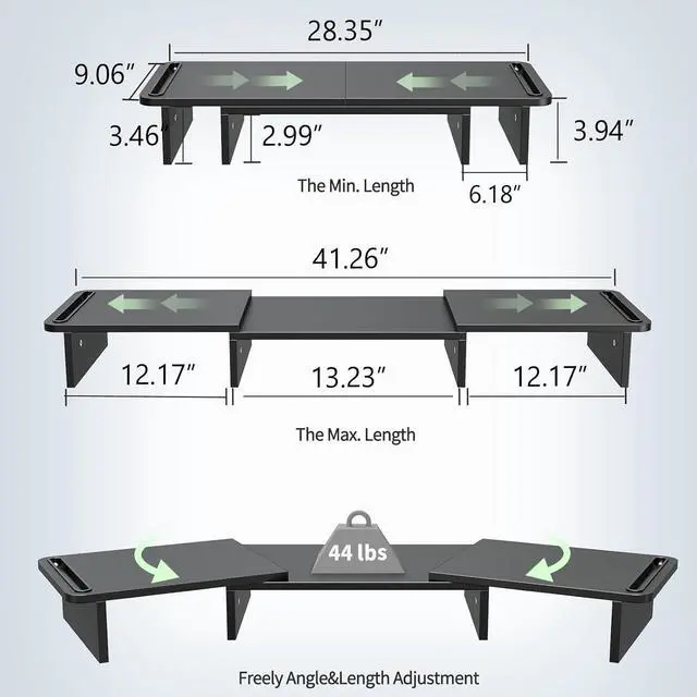 Flexibility of extension and move: With two sides resting on the middle riser with a pivot point, this desk stand riser makes the whole unit easy to extend and angle.