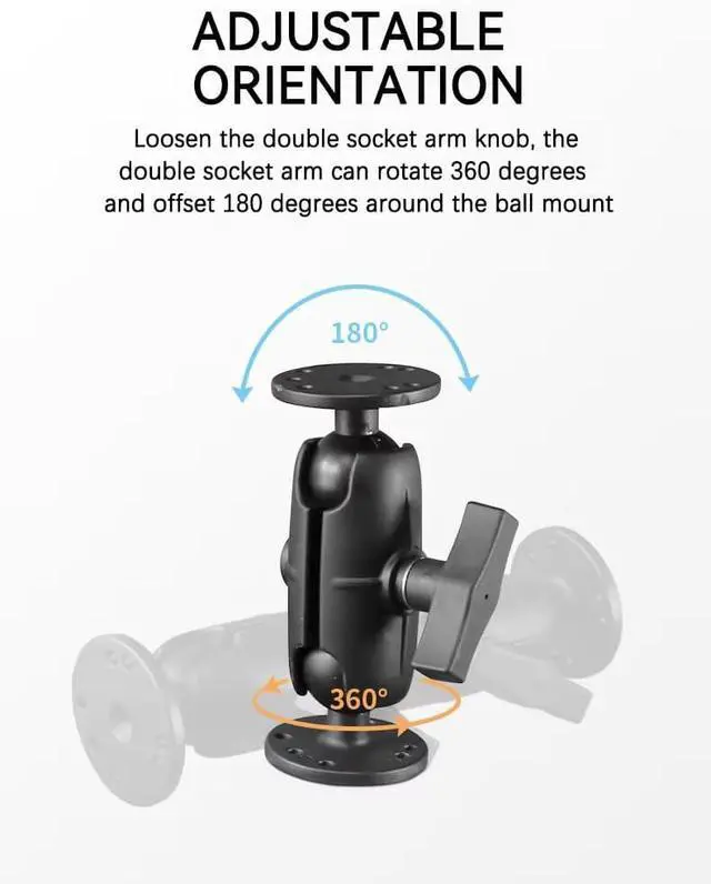 1.5 ' ' Ball double socket arm attaches to any 1.5 ' ' C size ball mounts components, mounting bases and device holders; double ball and socket technology allows for near-infinite adjustability of your mounting system
