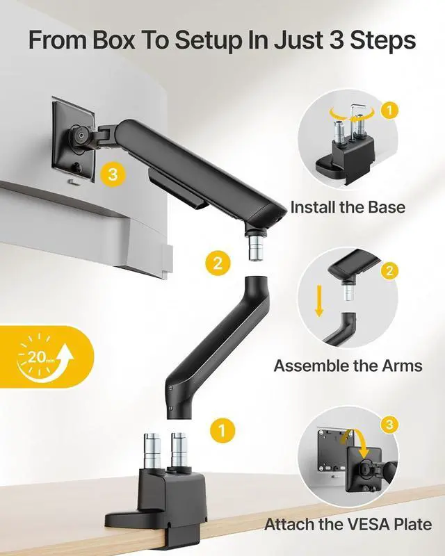 FAST INSTALLATION & DEPENDABLE SUPPORT: Set up in minutes with the included C-clamp and grommet base, compatible with most desks. All hardware and step-by-step instructions are provided for a quick, hassle-free installation. And if you ever need help, our responsive customer service team is ready to assistjust reach out anytime.