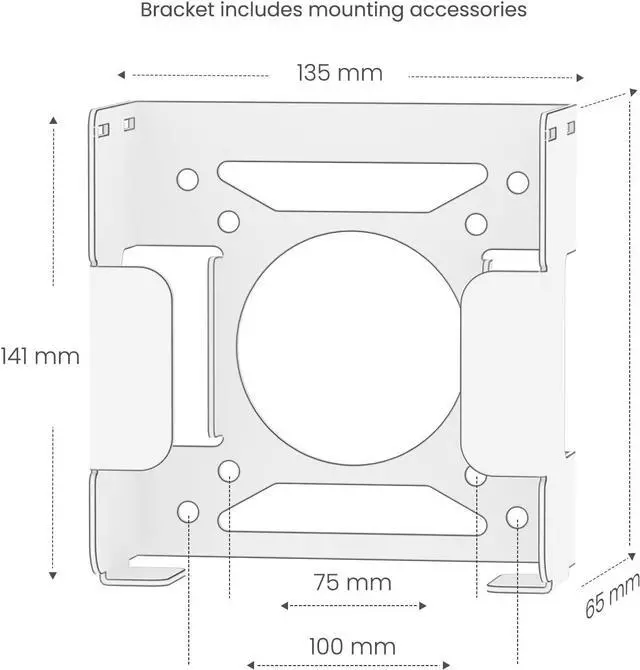 Features a ventilation design to keep cooling and prevent overheating. So much so that this Mac-mini M4 / M4 Pro 2024 mount has good heat dissipation whether it is mounted behind a display, under a table or on a wall.